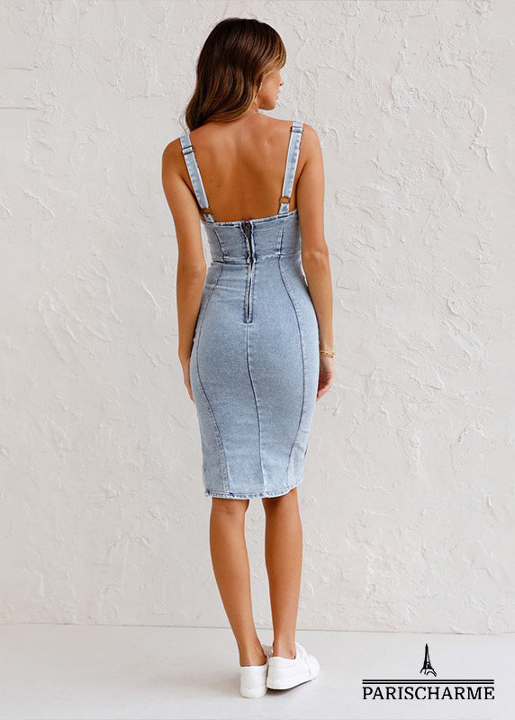 Faites ressortir votre personnalité et montrez-la au monde entier avec cette robe midi de style délavé, dotée d'une coupe bodycon parfaite qui flatte votre silhouette et met en valeur toutes vos courbes. L'encolure ronde profonde, les coutures passepoilées et la fente latérale audacieuse ajoutent du piquant à votre look - une véritable pièce d'apparat à l'attrait magnétique qui attirera tous les regards sur vous.