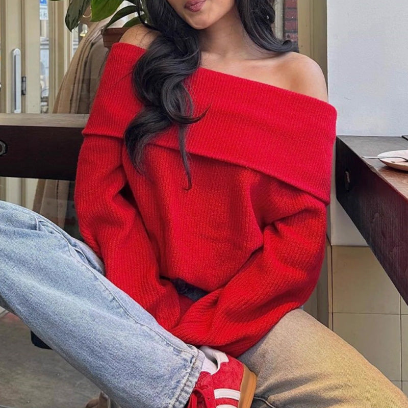 Pull décontracté à manches longues et épaules dénudées pour femme