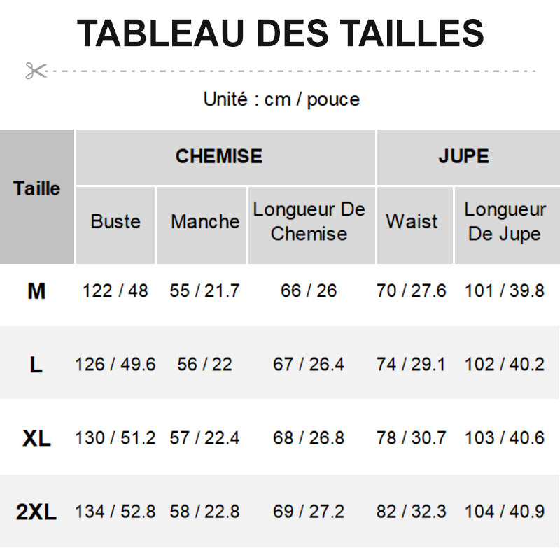 Le paquet comprend : 1*Chemise + 1*Jupe
