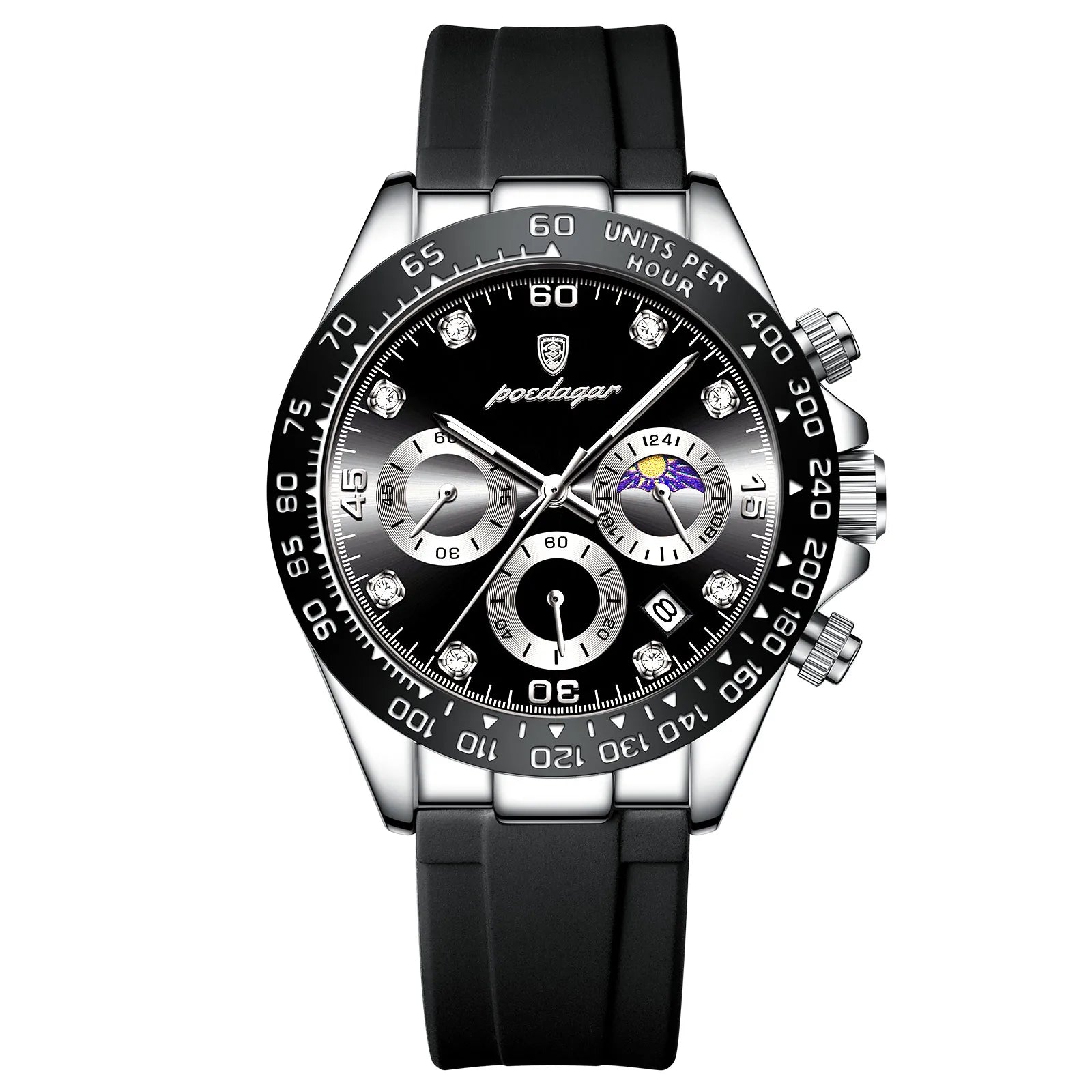 Avec un bracelet en acier inoxydable et un cadran de 42 mm, cette montre allie style et fonctionnalité. Dotée de fonctionnalités telles qu'un aiguille lumineuse, une date automatique, un chronographe et un calendrier complet, la Montre Poedagar Luxe ne se contente pas de vous garder à l'heure, elle ajoute également une touche de luxe à votre vie quotidienne, vous assurant d'être toujours prêt à relever tous les défis avec confiance.