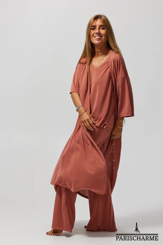 Cet ensemble harmonieux en modal est conçu pour ceux qui recherchent à la fois confort et élégance, idéal pour une journée au bureau, une sortie en ville ou une soirée entre amis. Ajoutez une touche de classe à votre garde-robe avec ce trio sophistiqué.